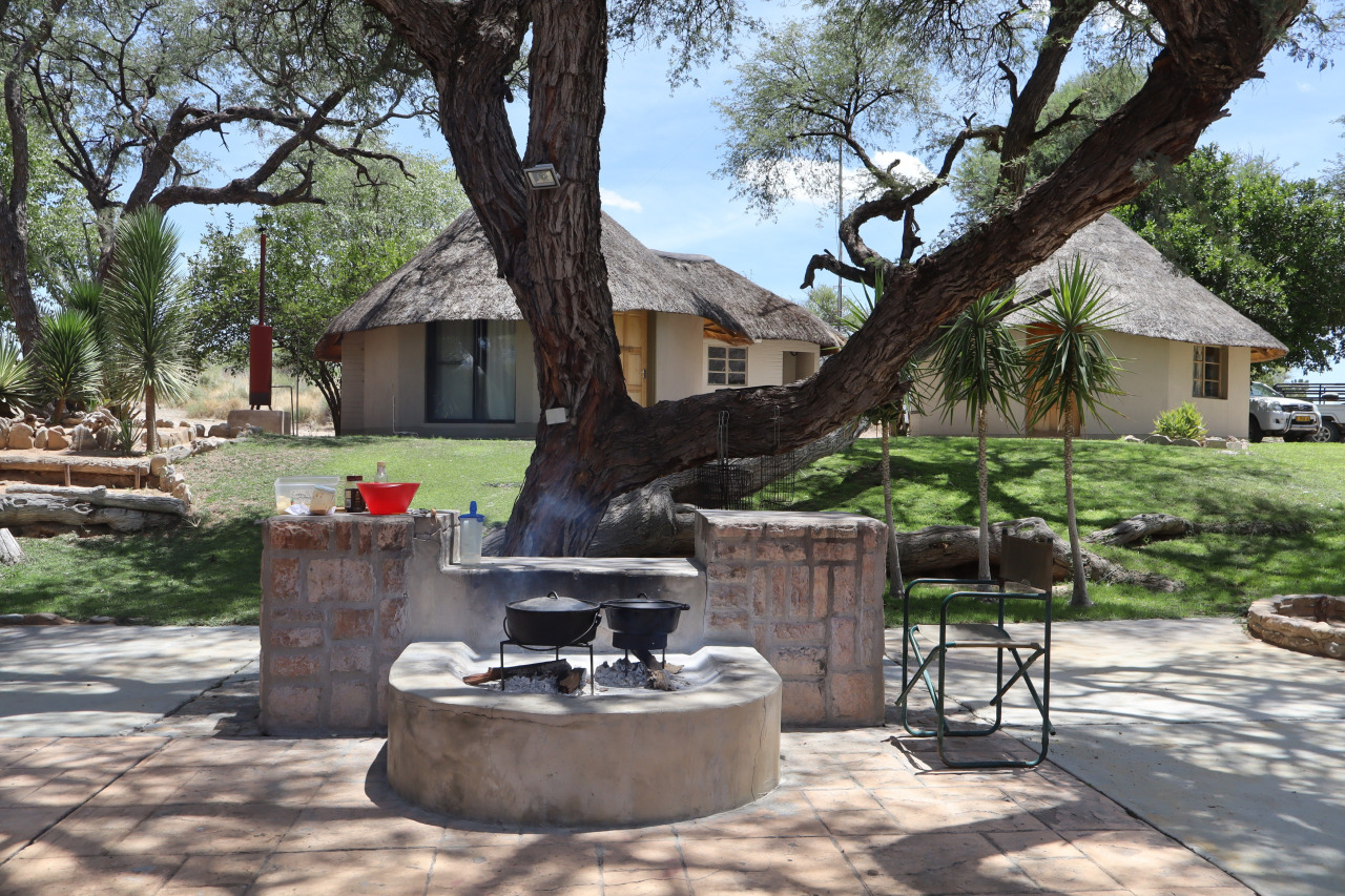 Accommodation is available in a bush camp on the banks of the Ugab River with 5 thatch roofed bungalows with en-suite bathrooms. Both indoor and outdoor barbeque areas are available in a lovely trophy room and lapa area.